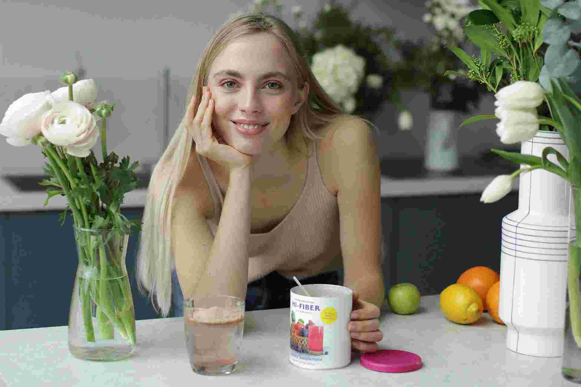Jablečná vláknina, inulin (z kořene čekanky), (guarová guma, arabská guma, karboxymethylcelulóza), rýžové otruby, červená řepa, kyselina citrónová, L-glutamin, koncentrát šťávy ze slivoně, glukomannan 200 mg, přírodní borůvkový aromatizátor, přírodní rybízový aromatizátor, plody ananasu, výtažek kapustoně brazilské, plody borůvek, jablečný pektin, gel aloe vera, steviol glykosid, oxid křemičitý.